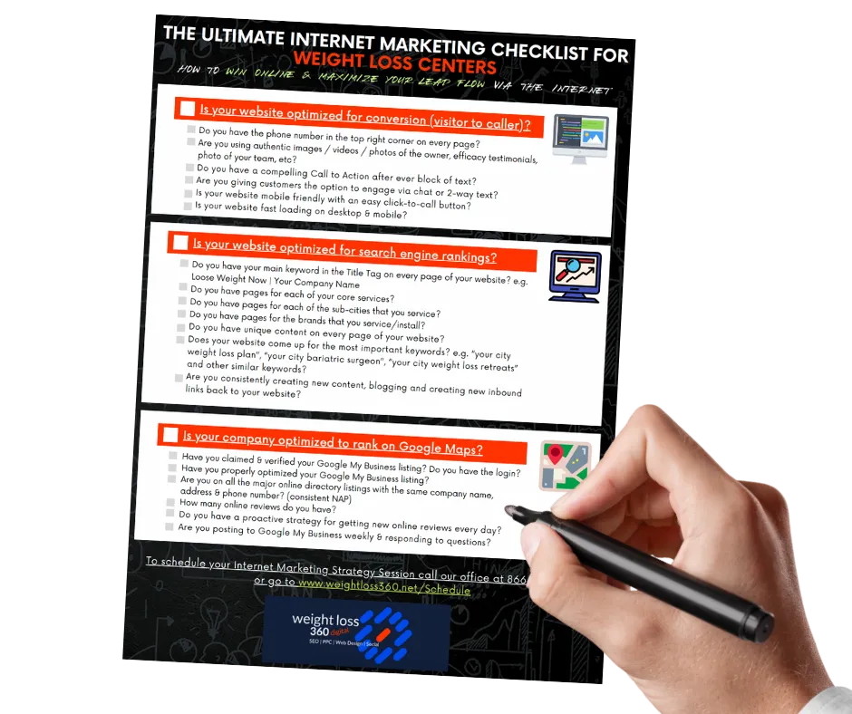 How to get your Internet Marketing Right for your Weight Loss Center Business. This checklist will help you identify what is missing from your current strategy and what you must focus on next to take your company to the next level.